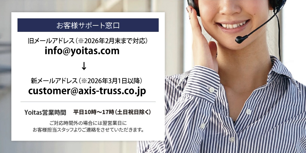 ・新メールアドレス:customer@axis-truss.co.jp(※2026年3月1日以降)